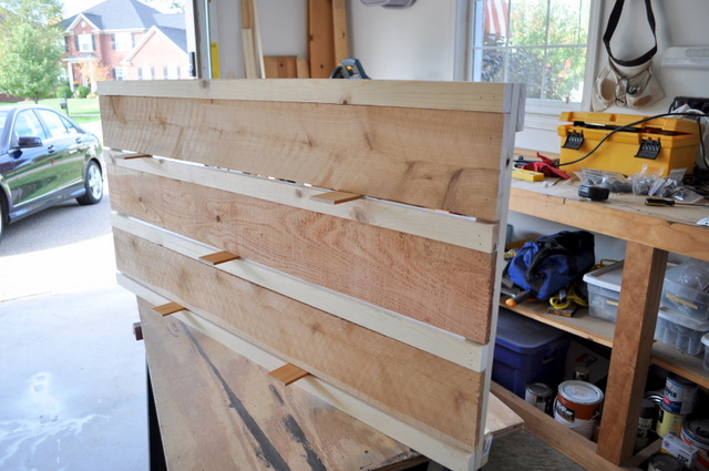 I attached all my pieces with liquid nails first and followed that with a few nail gun. KaPow, KaPow…nailguns=fun :)