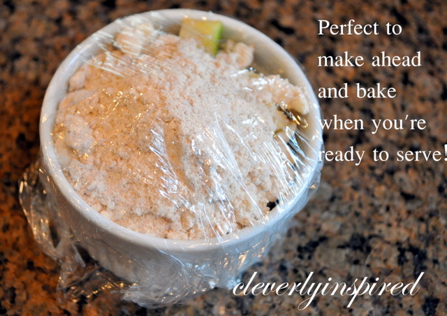 This past Sunday I showed those of you on Facebook what I was baking. Sorry to be such a tease. This dessert engulfed the whole house with the smell of fall. I love this version of a simple apple crisp because they are just the right amount, no need to share, easy to put together ahead of time (up to 2 days) and then all you have to do is bake them up! Perfect for Thanksgiving…or maybe a holiday dinner party!