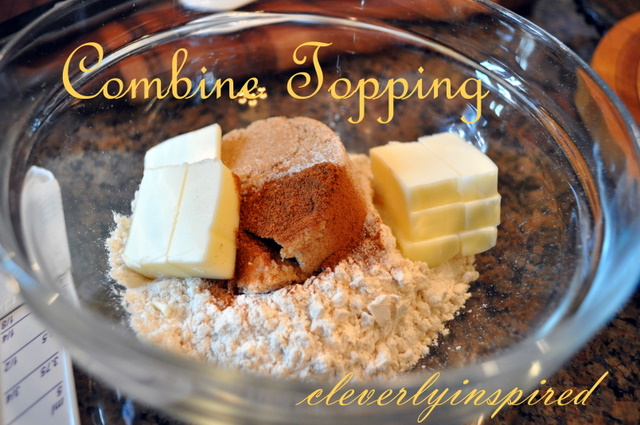Cut the topping with a pastry knife or a couple of forks. Spoon onto each ramekin.