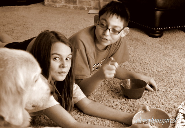 “Emily, you said that there wasn’t any ice cream left, but you have half a bowl full…., and you barely left any for me…”