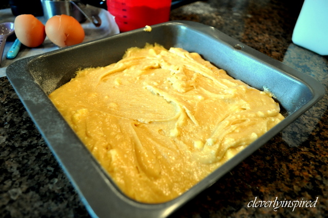 • Spread batter in prepared pan.