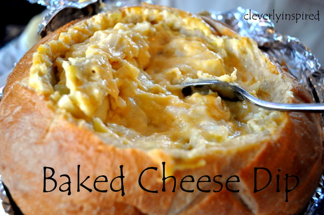 - Mix all ingredients. Hollow out a large bread bowl (keeping the top intact). Pour in cheese mixture. Cover with bread top. Bake 425 1.5 hours