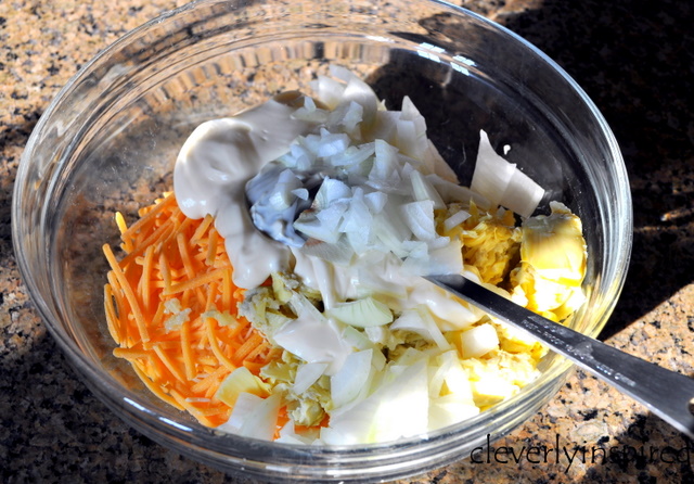 - 1 can artichokes drained and chopped up (I just cut them with scissors inside the can)