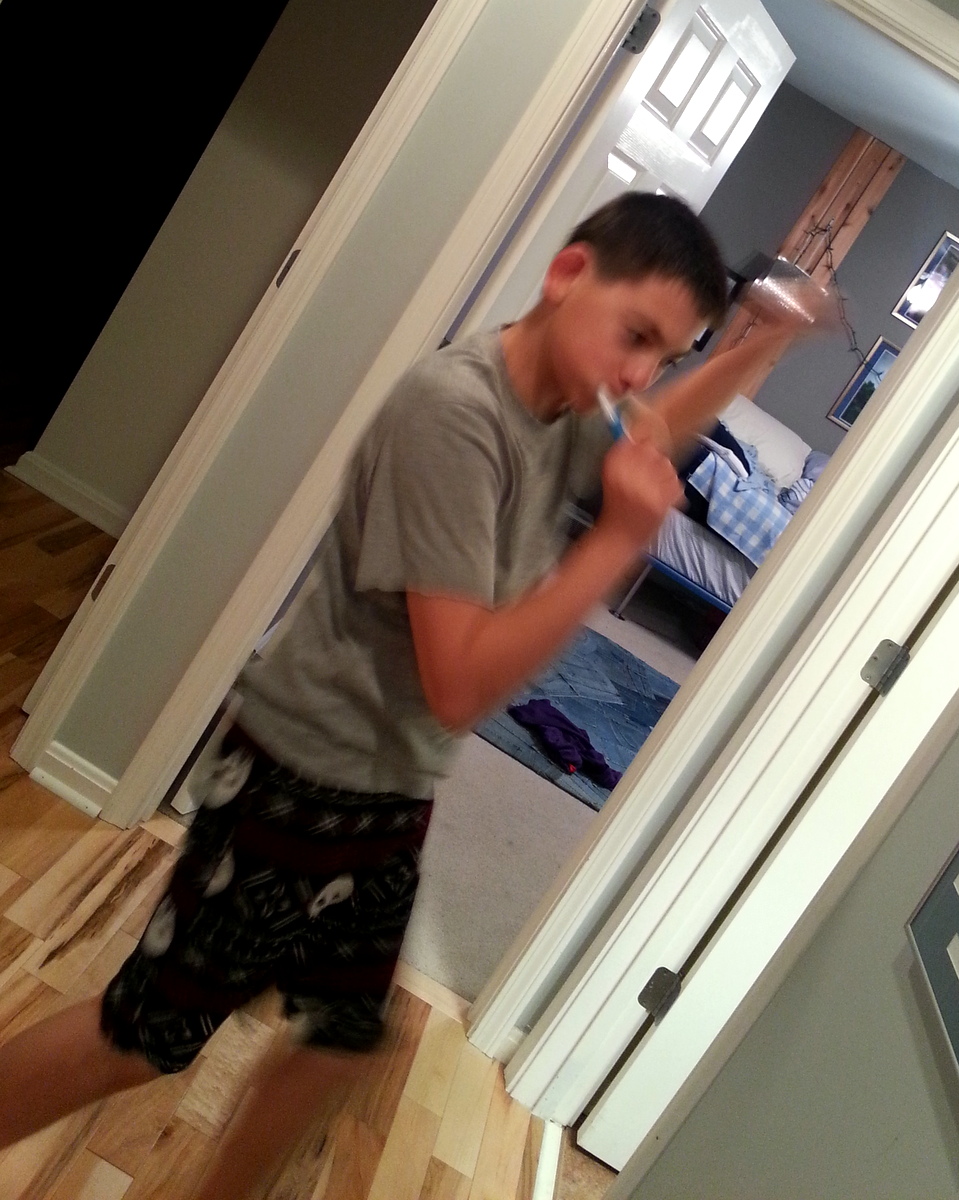 What happens in the time you ask your children to go upstairs to brush their teeth…to the time they get to the bathroom? It is like they go into a time warp and start acting like they are toddlers (in my case at least, I realize yours are acting like toddlers most likely because they are toddlers…but my tweens act this way too) . This is them….as “toddlers”….sigh…..