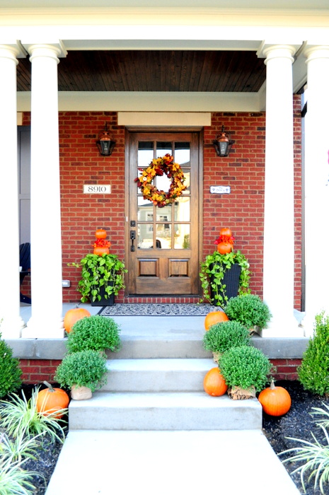 I ran out of burlap….so I used kraft paper for 2 of the mums….yes, it will get wet….but I don’t really care…I like how it looks;)