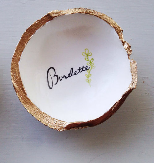 Friend of mine on Facebook started this holiday gift sharing round-robin sort of thing ( a modern cool version of a chain letter) You send a $10 gift to someone on the list…and pass the list along to 6 other friends. Then they share it with 6 friends and so on…. Hopefully I’ll be get getting some fun things in the mail soon! Mail is so much fun! I sent this adorable personalized jewelry bowl to my secret friend.
